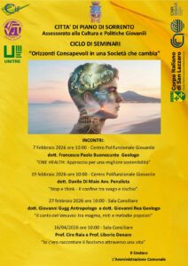 La Città di Piano di Sorrento, attraverso l’Assessorato alla Cultura e alle Politiche Giovanili, promuove un importante ciclo di seminari dal titolo “Orizzonti Consapevoli in una Società che cambia”, un percorso di incontri pensato per stimolare riflessione, consapevolezza e dialogo sui grandi temi della contemporaneità.