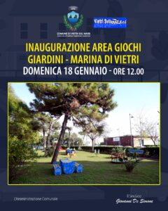 A Vietri sul Mare una nuova area giochi dedicata ai più piccoli sta per essere restituita alla comunità. Domenica 18 gennaio, alle ore 12.00, nei giardini adiacenti piazza don Attilio Della Porta, a Marina di Vietri, sarà inaugurato il nuovo spazio attrezzato realizzato dall’Amministrazione comunale.