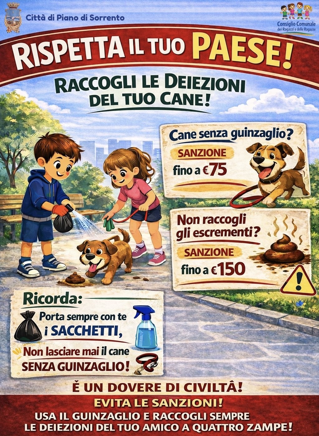 Proprio per contrastare queste situazioni, l’amministrazione comunale ha annunciato un’intensificazione dei controlli sul territorio. Le attività di vigilanza, già avviate, hanno portato all’emissione di nuove sanzioni: tra i casi recenti, anche quello di un cane lasciato incustodito nel cuore del centro storico, che ha sporcato senza che il proprietario provvedesse alla pulizia.
