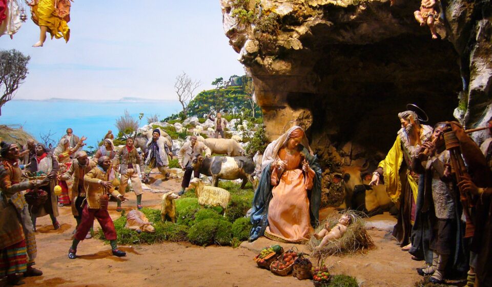 La rappresentazione plastica del nostro Natale risente fortemente dell’interpretazione data da San Francesco, quando rappresentò per la prima volta nella storia la nascita di Gesù Bambino a Greccio. Era la notte di Natale del 1223. Il Poverello di Assisi volle vedere e toccare con mano i disagi e le sofferenze della Sacra Famiglia di quella notte a Betlemme. L’aperta campagna, le montagne sullo sfondo, la neve dei nostri presepi sono parte della visione francescana della Natività.