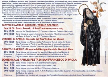 Ore 19:30 – Santa Messa, a seguire Adorazione Eucaristica sul tema “San Francesco di Paola e il Santo di Assisi”, a cura di P. Francesco Santoro