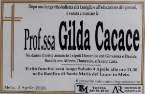 Meta porge l’estremo saluto alla Prof.ssa Gilda Cacace