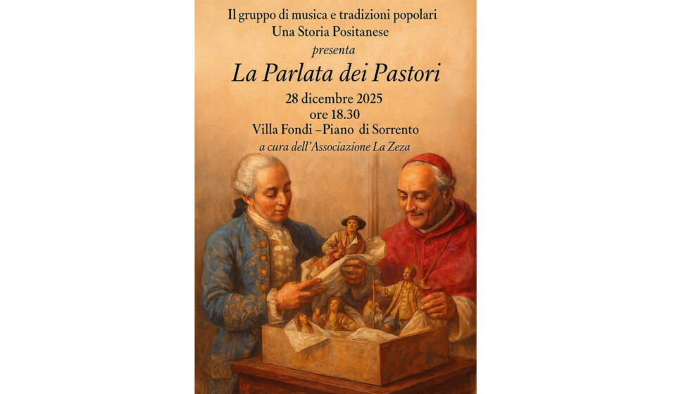 Piano di Sorrento. Questa sera, domenica 28 dicembre, appuntamento alle ore 18.30 a Villa Fondi con “La Parlata dei Pastori”, un evento natalizio all’insegna delle radici popolari e della cultura partenopea presentato dal gruppo di musica e tradizioni popolari “Una Storia Positanese” e curato dall’Associazione “La Zeza”. L’evento promette di riportare in vita atmosfere, dialetti, gestualità e racconti che affondano le radici nel teatro popolare e nelle rappresentazioni pastorali dell’antica tradizione presepiale.