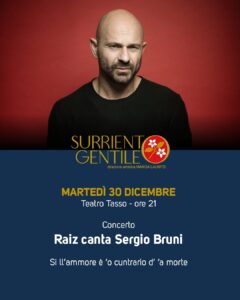 Il momento più atteso è in programma in serata, quando alle ore 21.00, al Teatro Tasso, andrà in scena il concerto di Raiz dal titolo “Si ll’ammore è ’o cuntrario d’a ’morte”, un omaggio sentito alla tradizione musicale napoletana e alla figura indimenticabile di Sergio Bruni.