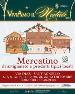 L’atmosfera si fa ancora più suggestiva lungo via Diaz, salendo verso Piazzetta Angri, dove dalle 17.00 i mercatini di Natale e gli artisti di strada accompagneranno i visitatori in un percorso di luci e meraviglia. Un’esperienza immersiva che trasforma la piazzetta in un palcoscenico a cielo aperto, perfetto per respirare l’autentico spirito delle feste.