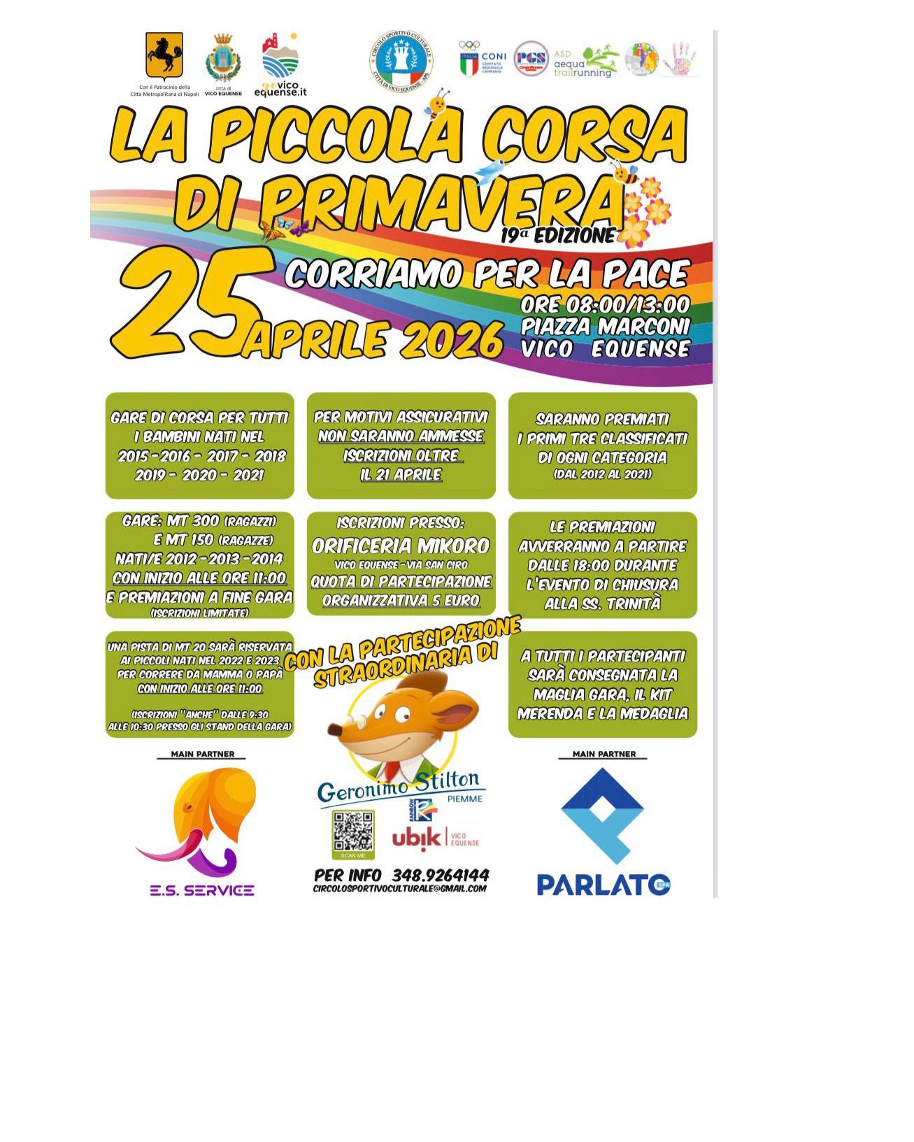 La Piccola Corsa di Primavera si conferma così molto più di una manifestazione sportiva: è un momento di crescita collettiva, un’occasione per trasmettere ai più piccoli il valore della condivisione, del rispetto reciproco e della speranza. A Vico Equense il 25 aprile sarà una giornata di sorrisi, colori ed emozioni, con i bambini protagonisti di un messaggio semplice ma potente: il futuro si costruisce insieme, passo dopo passo.